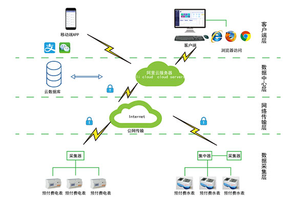 對(duì)于分布不同省、地市或同地市不同區(qū)域的連鎖商業(yè)、集團(tuán)、百貨、門(mén)店、物業(yè)、院校等業(yè)務(wù)分散,要求集中管理、線上支付,低額提醒、欠費(fèi)告警。但常規(guī)的本地插卡付費(fèi)、本地預(yù)付費(fèi)并不能完全滿足客戶(hù)管理需求,預(yù)付費(fèi)云平臺(tái)應(yīng)運(yùn)而生。AcrelCloud-3200水電預(yù)付費(fèi)云平臺(tái)無(wú)縫集成商業(yè)、物業(yè)公司、集團(tuán)企業(yè)、院校等分散布置的安科瑞DDSY/ADF系列電子式預(yù)付費(fèi)電能表、閥控智能水表等,提供微信、支付寶、銀聯(lián)等可選的在線支付方式,大大方便了用戶(hù)充值、圈存,提供預(yù)警和充值、退費(fèi)、電能消耗等記錄查詢(xún),方便用戶(hù)和管理方的數(shù)據(jù)統(tǒng)計(jì)和財(cái)務(wù)分析,提供先交費(fèi)后使用的管控機(jī)制,大大降低了管理部門(mén)的收費(fèi)成本。